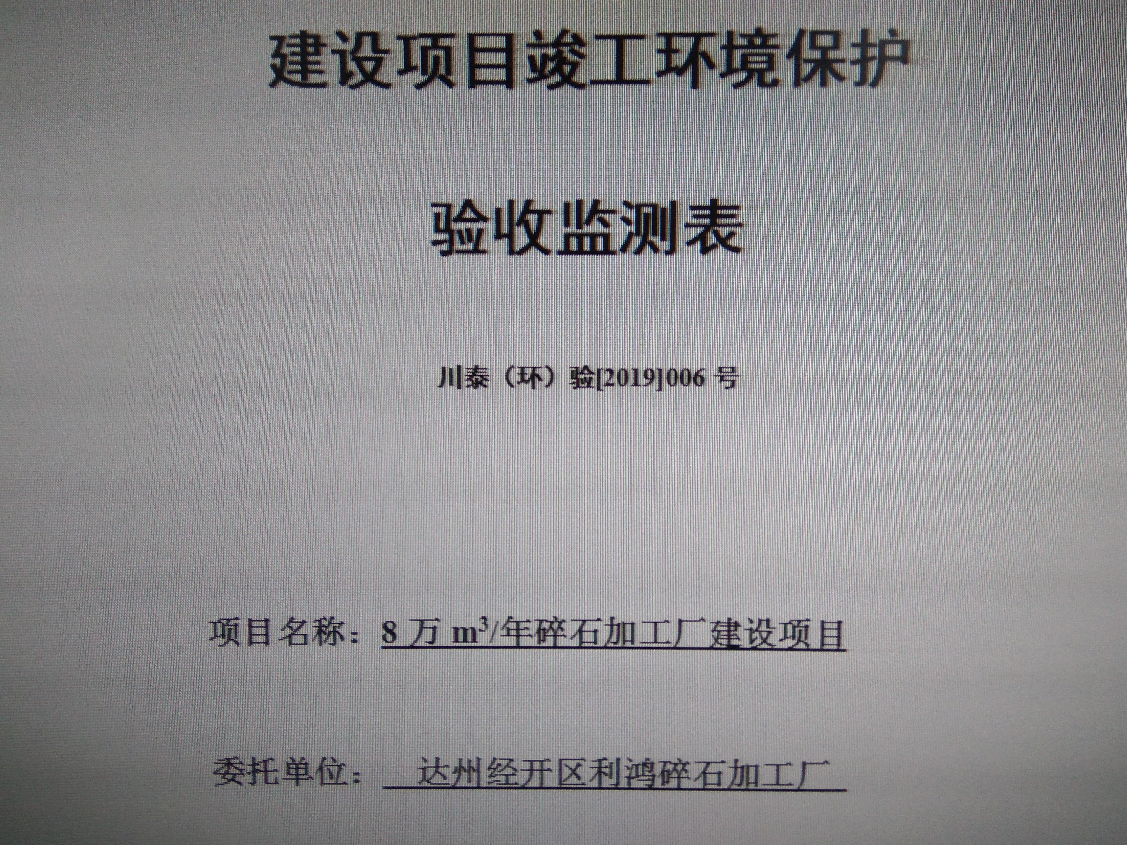 根據(jù)中華人民共和國國務(wù)院令第682號《國務(wù)院關(guān)于修改(建設(shè)項目環(huán)境保護條例)的決定》(2017.10.01)、中華人民共和國環(huán)境保護部國環(huán)規(guī)環(huán)評[2017]4號《建設(shè)項目竣工環(huán)境保護驗收暫行辦法》(2017.11.22)的有關(guān)規(guī)定、成都市環(huán)境保護局《關(guān)于貫徹落實2018.1.3)要求,現(xiàn)將達州經(jīng)開區(qū)利鴻碎石加工廠8萬m3/年碎石加工廠建設(shè)項目竣工環(huán)境保護驗收內(nèi)容(包括驗收監(jiān)測表、驗收意見),現(xiàn)公示如下: