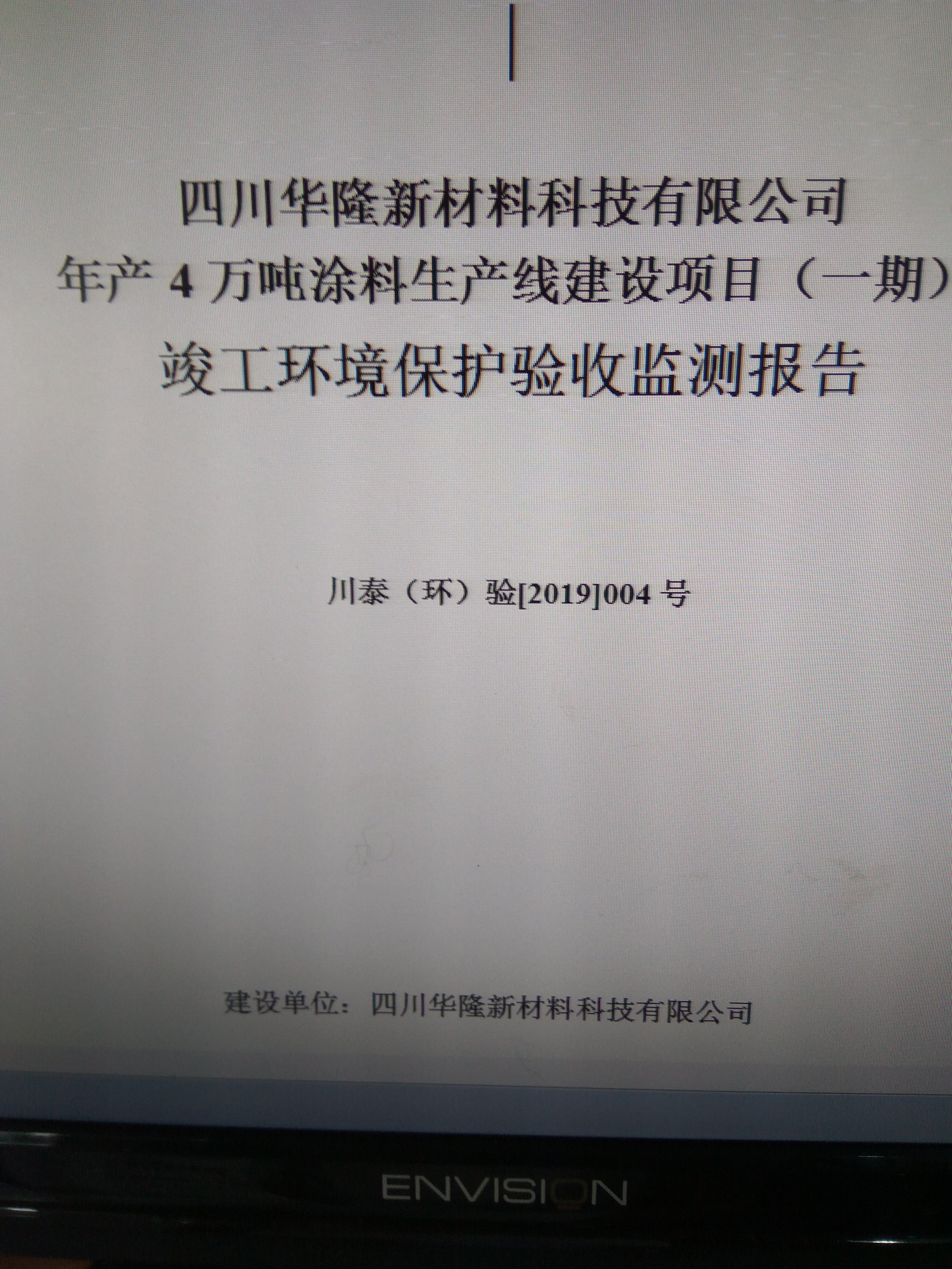 根據(jù)中華人民共和國國務(wù)院令第682號《國務(wù)院關(guān)于修改(建設(shè)項目環(huán)境保護條例)的決定》(2017.10.01)、中華人民共和國環(huán)境保護部國環(huán)規(guī)環(huán)評[2017]4號《建設(shè)項目竣工環(huán)境保護驗收暫行辦法》(2017.11.22)的有關(guān)規(guī)定、成都市環(huán)境保護局《關(guān)于貫徹落實<建設(shè)項目竣工環(huán)境保護驗收暫行辦法>的通知》(2018.1.3)要求,現(xiàn)將四川華隆新材料科技有限公司年產(chǎn)4萬噸涂料生產(chǎn)線建設(shè)項目(一期)竣工環(huán)境保護驗收內(nèi)容(包括驗收監(jiān)測報告、驗收意見),現(xiàn)公示如下: