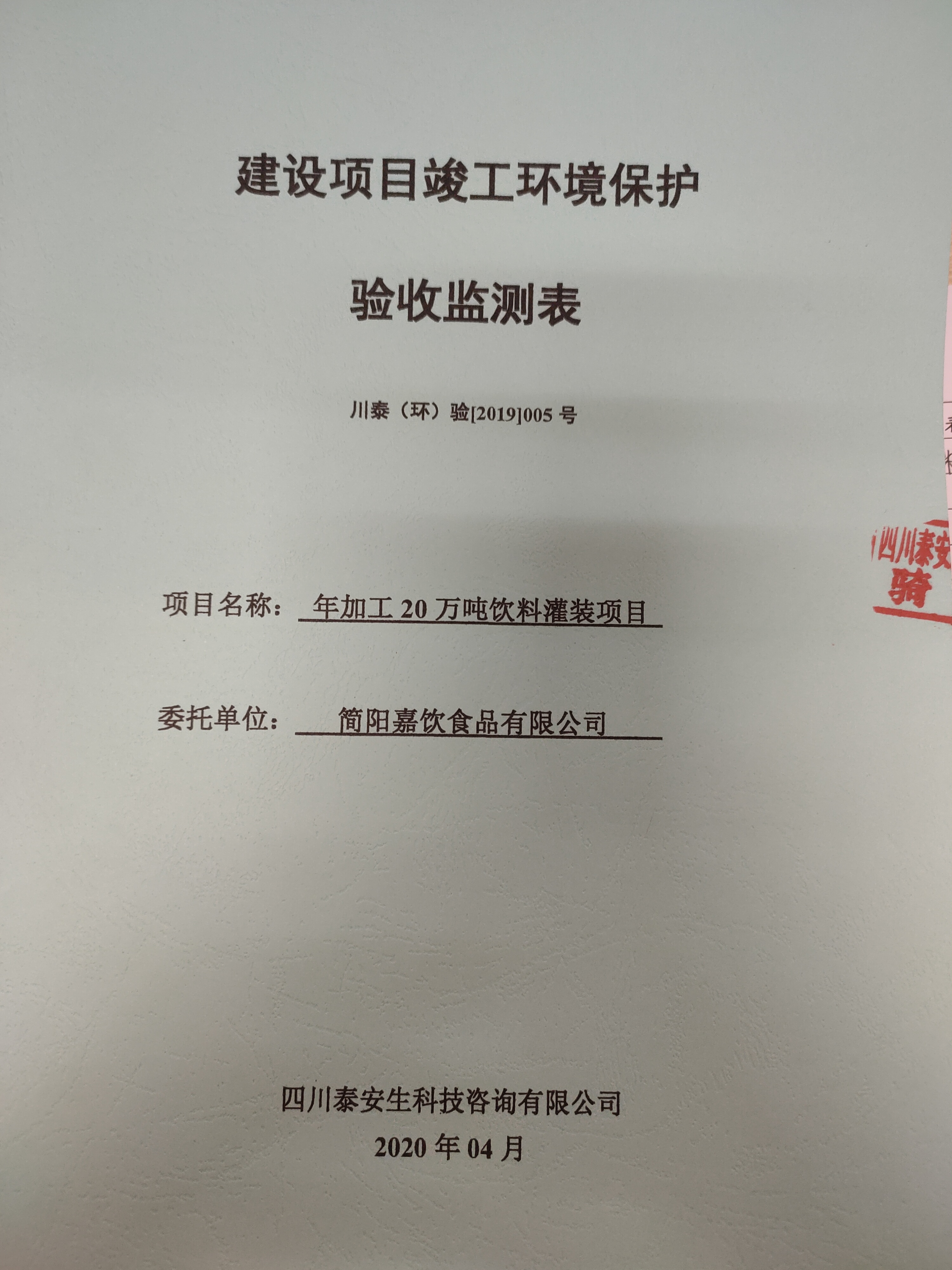 根據(jù)中華人民共和國國務(wù)院令第682號《國務(wù)院關(guān)于修改(建設(shè)項目環(huán)境保護條例)的決定》(2017.10.01)、中華人民共和國環(huán)境保護部國環(huán)規(guī)環(huán)評[2017]4號《建設(shè)項目竣工環(huán)境保護驗收暫行辦法》(2017.11.22)的有關(guān)規(guī)定、成都市環(huán)境保護局《關(guān)于貫徹落實2018.1.3)要求,現(xiàn)將簡陽嘉飲食品有限公司年加工20萬噸飲料灌裝建設(shè)項目竣工環(huán)境保護驗收內(nèi)容(包括驗收監(jiān)測表、驗收意見),現(xiàn)公示如下: