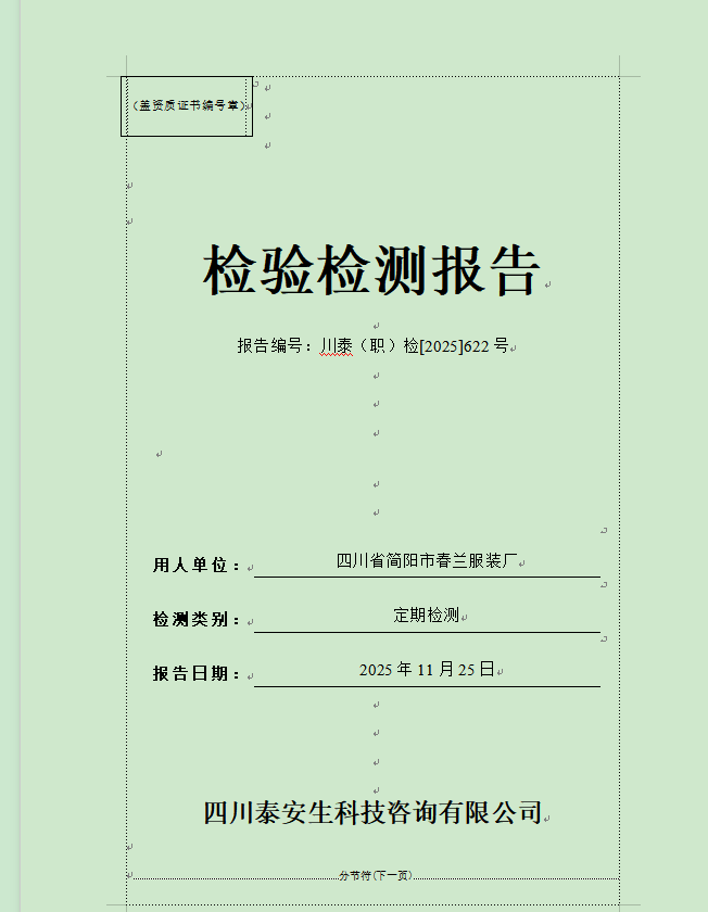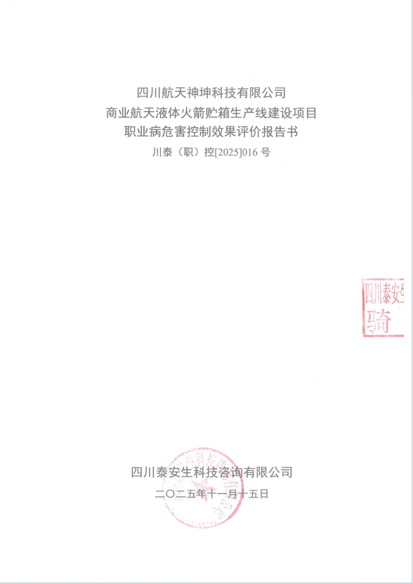 四川航天神坤科技有限公司商業(yè)航天液體火箭貯箱生產(chǎn)線建設(shè)項(xiàng)目職業(yè)病危害控制效果評價(jià)報(bào)告書—川泰(職)控[2025]016號