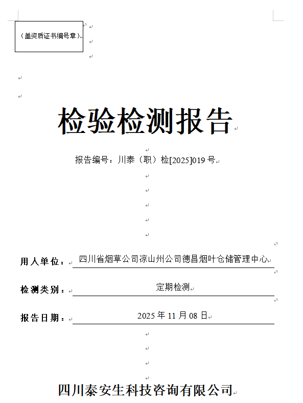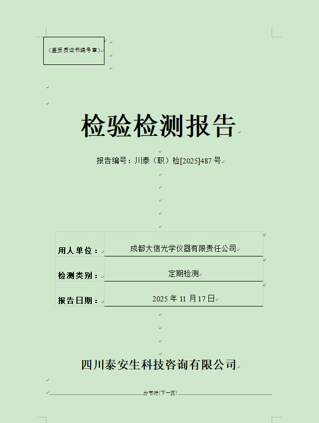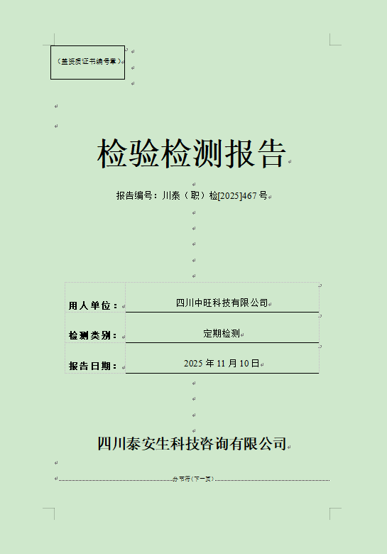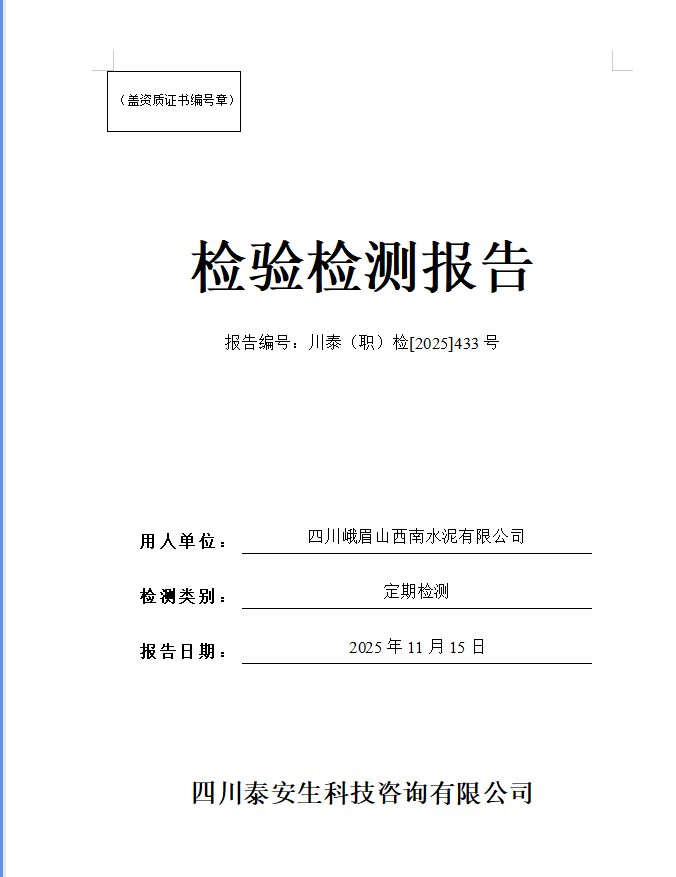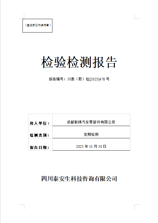 成都聯(lián)鑄汽車零部件有限公司——川泰(職)檢[2025]478號