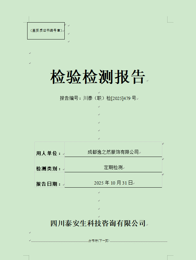 成都燃?xì)饧瘓F(tuán)股份有限公司—西區(qū)門(mén)站—川泰(職)檢[2025]270號(hào)