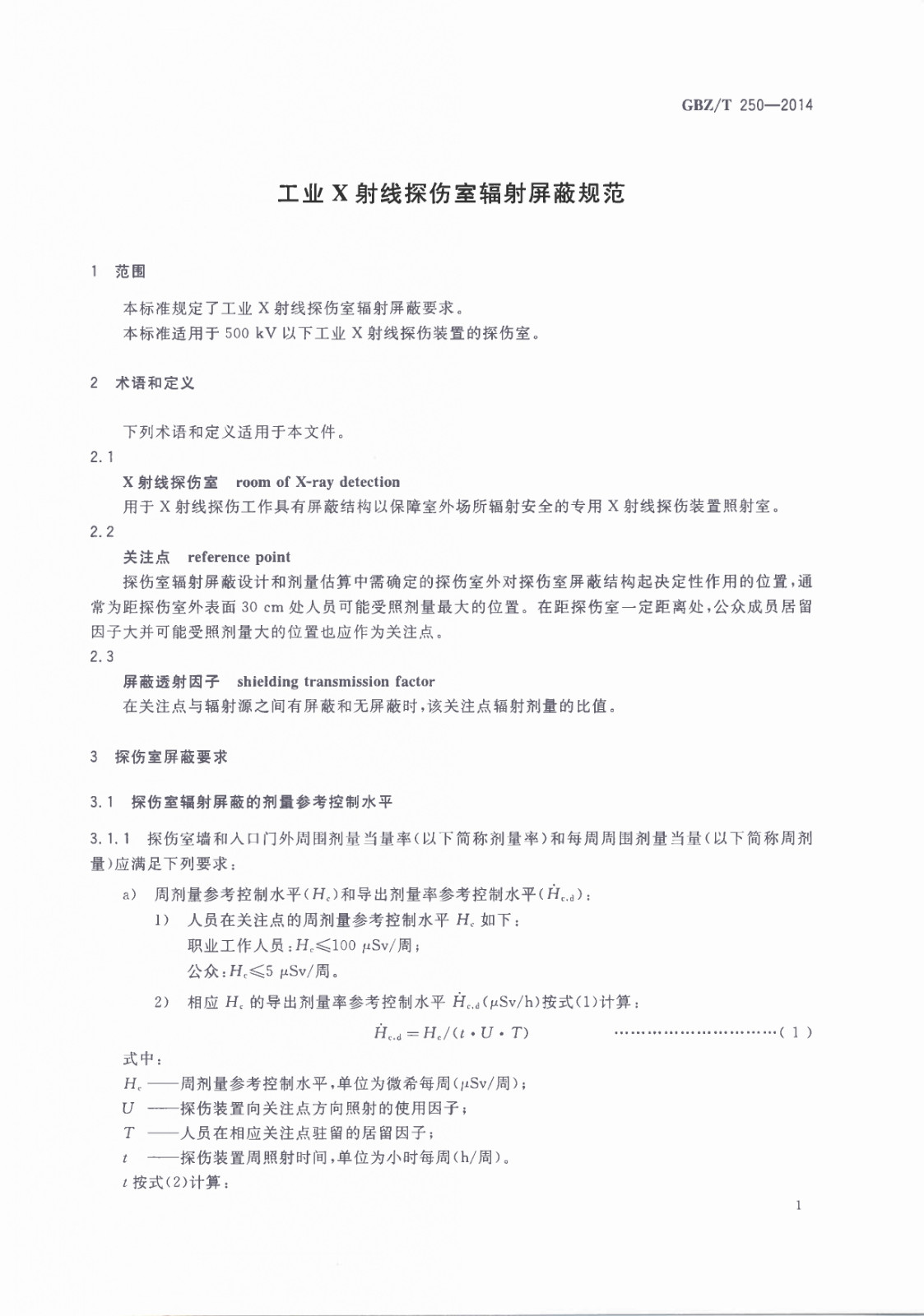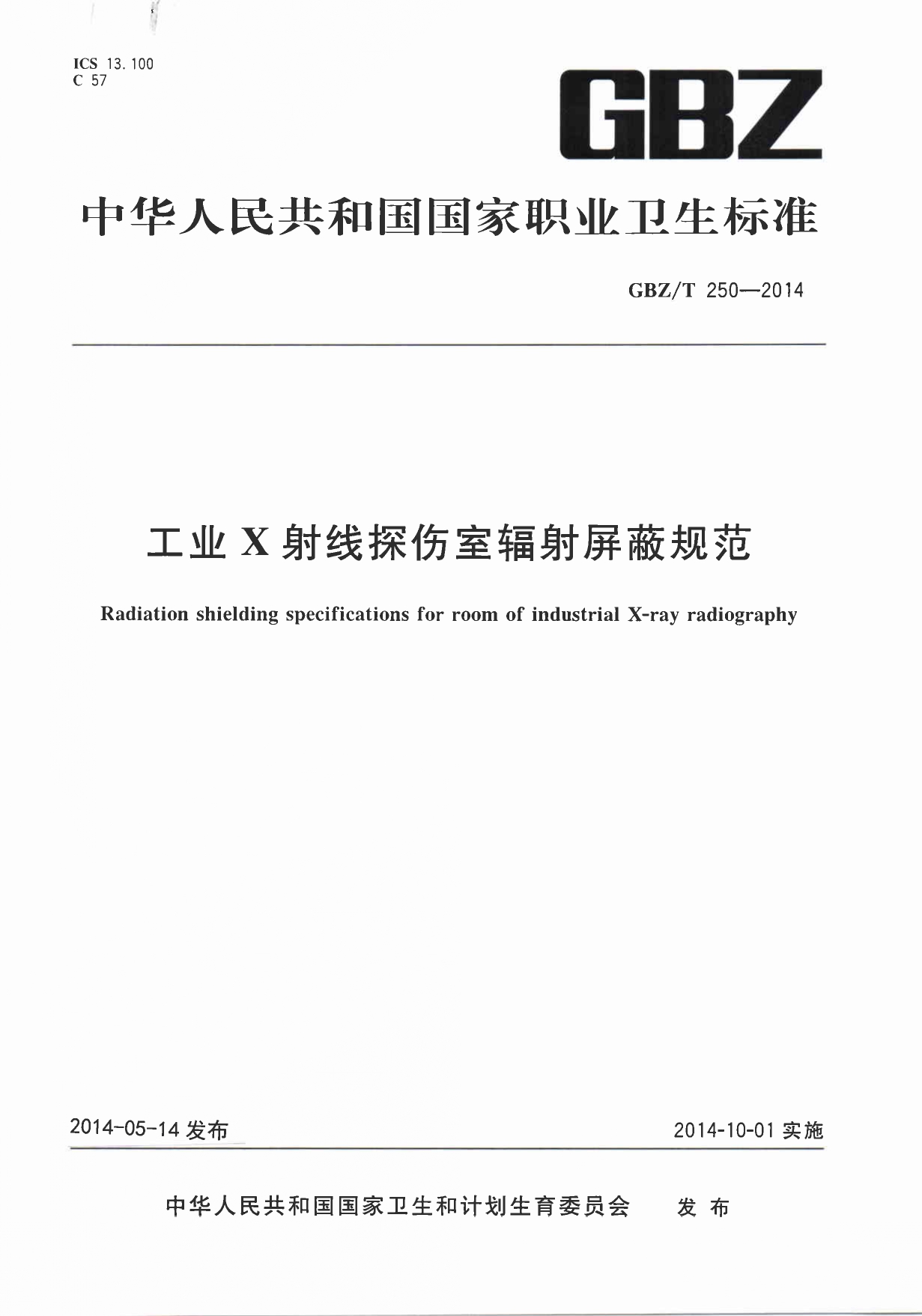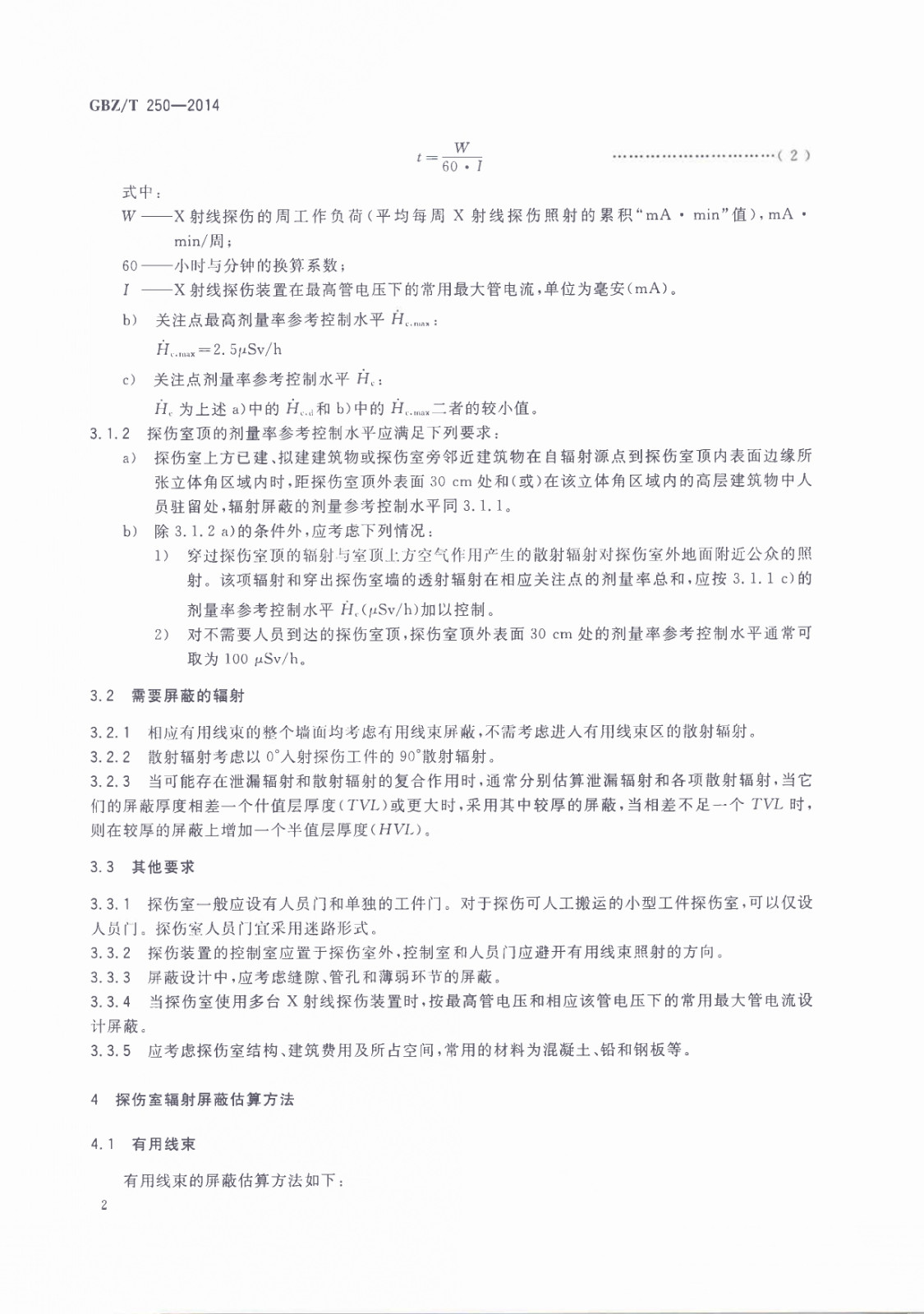 GBZT 250-2014 工業(yè)X射線探傷室輻射屏蔽規(guī)范