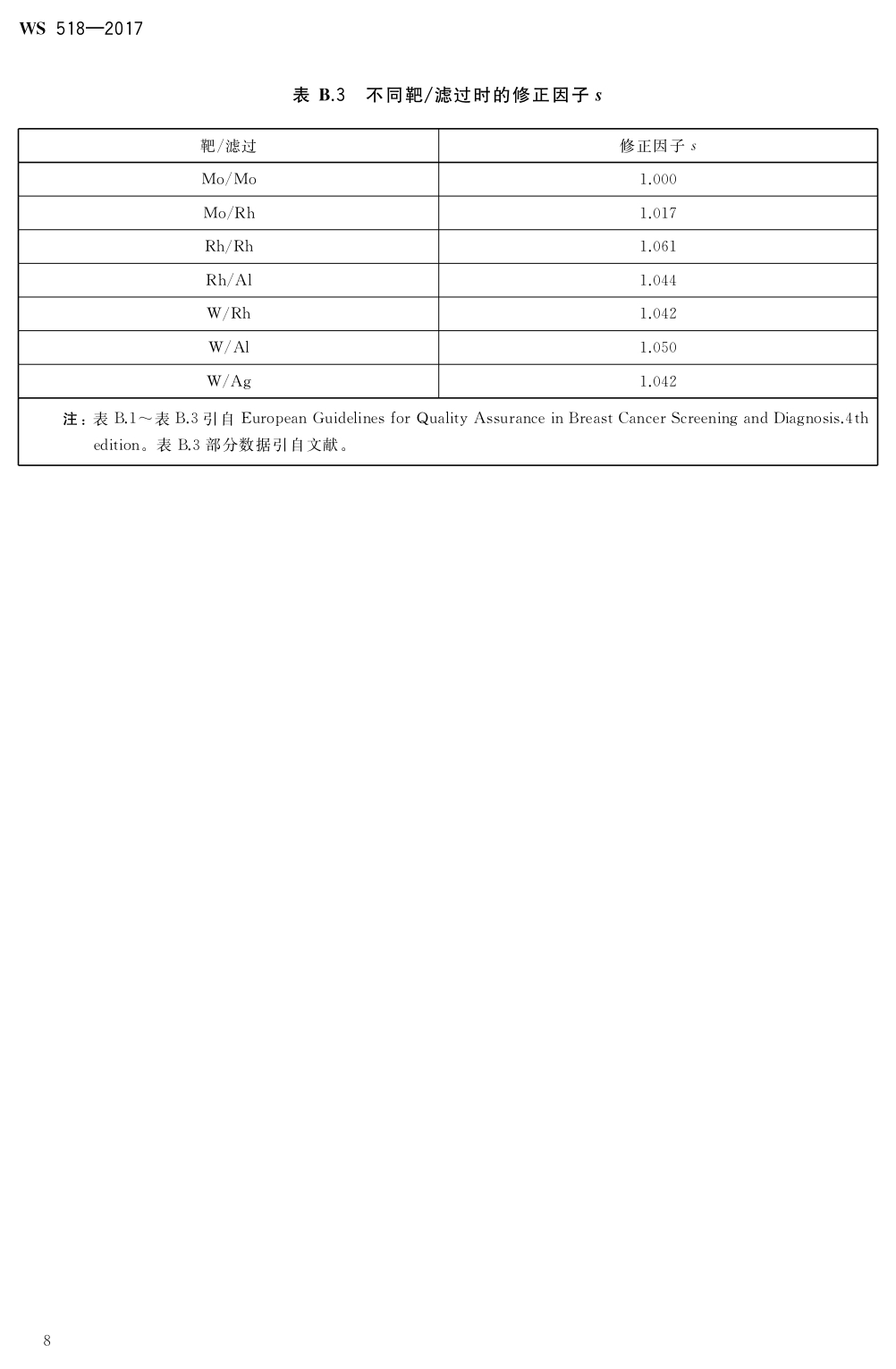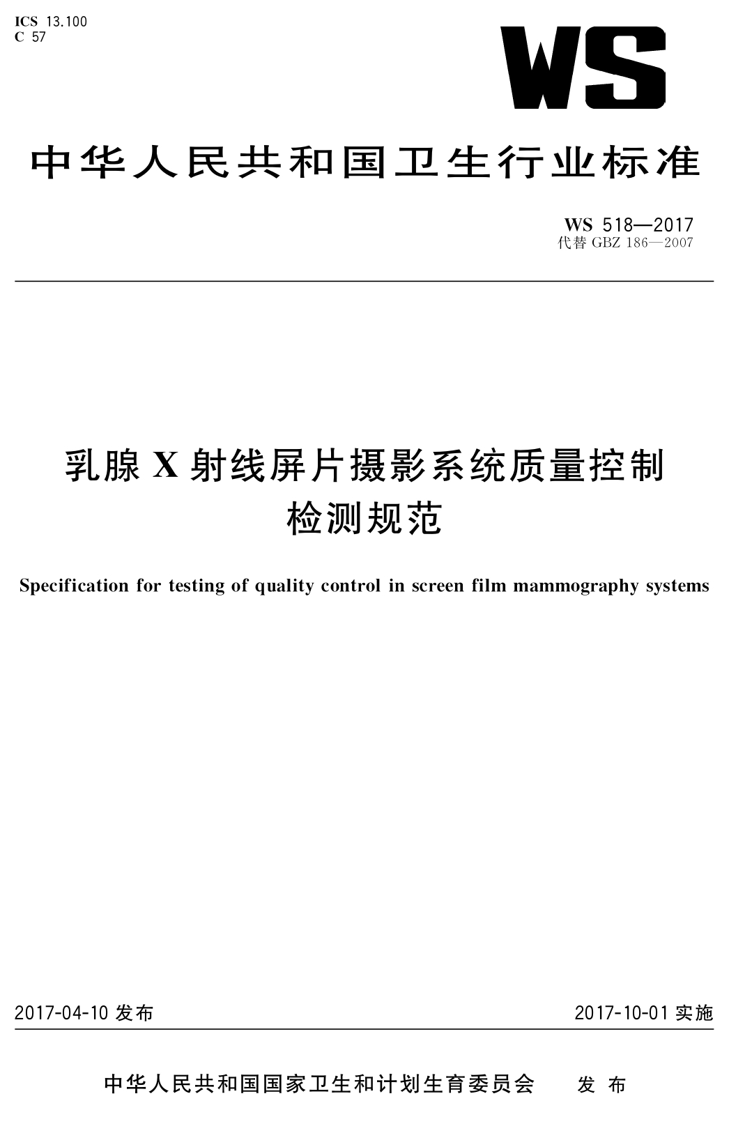 WS 518—2017屏片乳腺機(jī)