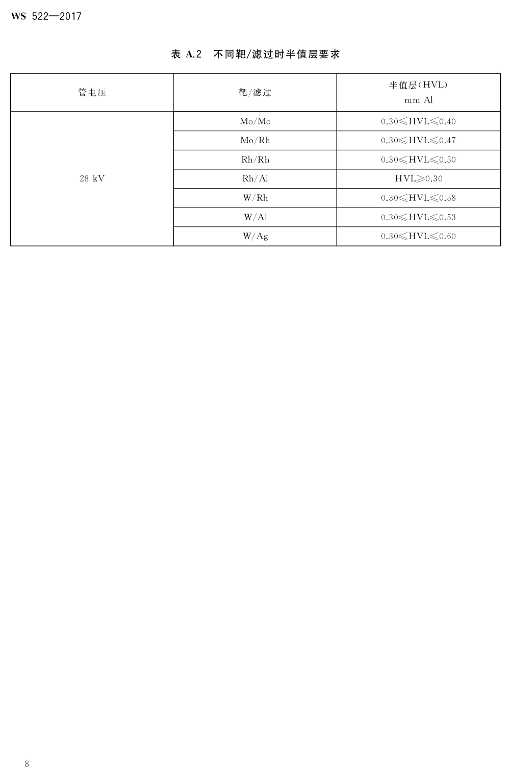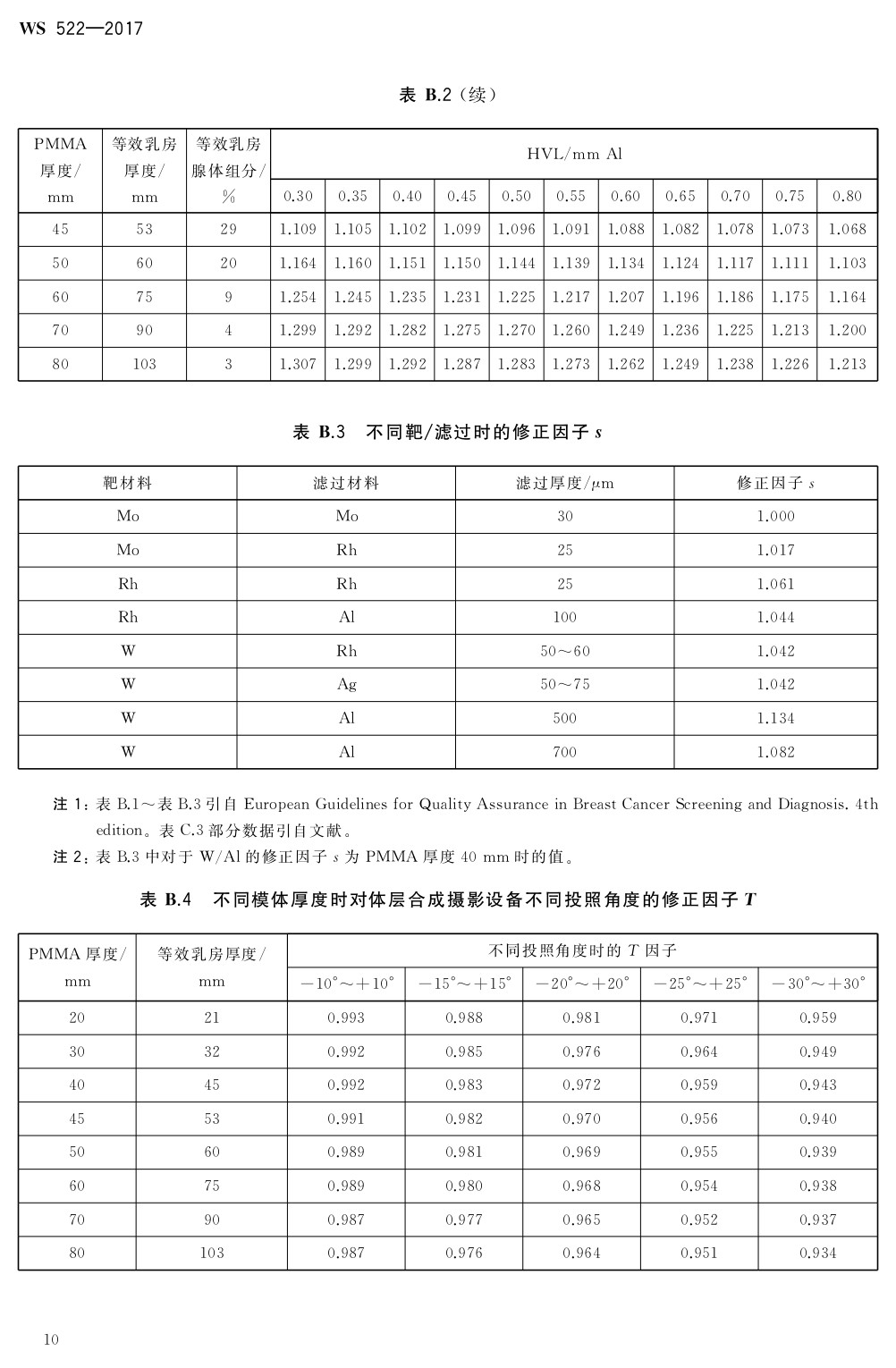 乳腺數(shù)字X射線攝影系統(tǒng)質(zhì)量控制檢測規(guī)范 WS 522-2017