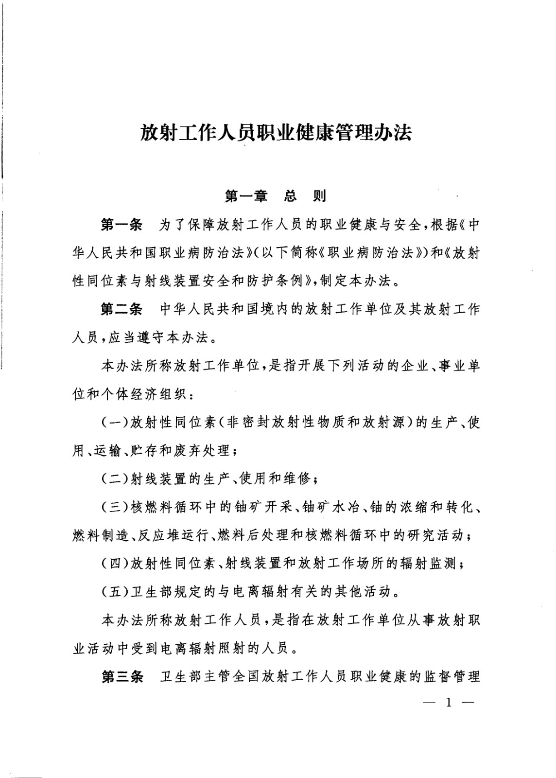 放射工作人員職業(yè)健康管理辦法(衛(wèi)生部令第55號(hào))