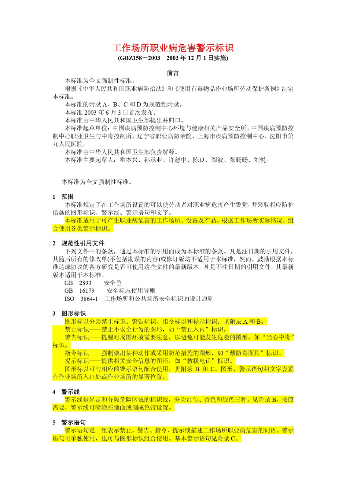 《工作場所職業(yè)病危害警示標(biāo)識》(GBZ158-2003)